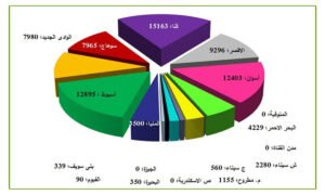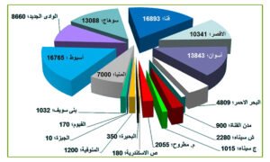 الرسم البياني التالي يوضح توزيع الأراضي بالمحافظات المختلفة وجميعها تقع في الظهير الصحراوي وبجوار محطات معالجة الصرف الصحي :